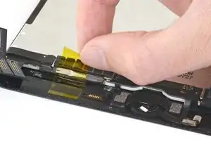 Кабель сборки кнопки «Домой» приклеен к экрану слабым клеем.