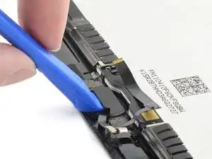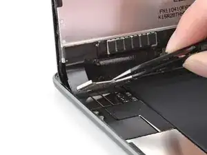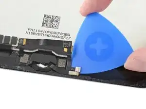 Проведите отщёлкивающим инструментом вокруг верхнего левого угла iPad, чтобы отделить клей.