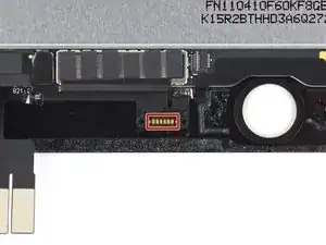 Крепление кабеля дисплея удерживается защёлкой под краем рамки.