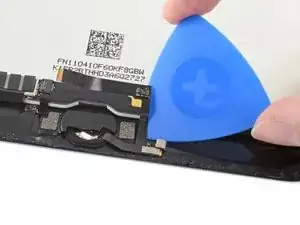 Используйте приспособление для вскрытия, чтобы отделить кабель сборки кнопки «Домой» от экрана.