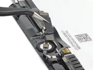 Используйте пинцет, чтобы снять наклейку, закрывающую ZIF-разъём сборки кнопки «Домой».