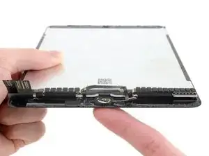 Положите разогретый iOpener на сторону iPad с кнопкой «Домой» и оставьте на несколько минут, чтобы размягчить клей под стеклом.