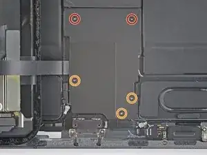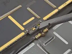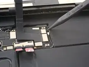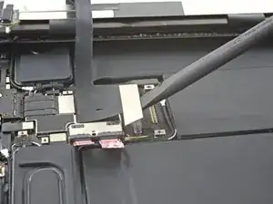 Отвинтите винт 1,8 мм, фиксирующий разъём аккумулятора на плате, используя крестовую отвёртку.