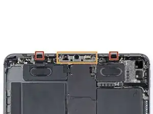 Верхнее ребро содержит модуль камеры, два датчика окружающего освещения, датчик приближения и передний микрофон. Все эти компоненты хрупкие и легко повреждаются, если медиатор вставлен слишком глубоко.