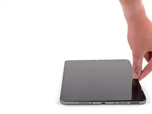 Приложите нагретый iOpener к верхнему ребру iPad на две минуты.