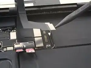 Используя тот же метод, что и с датчиком освещённости, подденьте одну из ножек пинцета под ленточный кабель и аккуратно приподнимите.