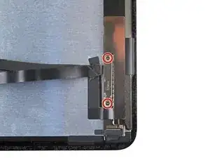 Используйте крестовую отвертку, чтобы выкрутить два винта длиной 1,3 мм, крепящих кронштейн кабеля дисплея.