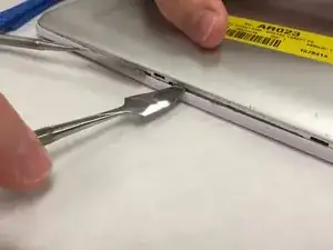 Для снятия аккумулятора потребуется инструмент для поддевания. Он хорошо приклеен.