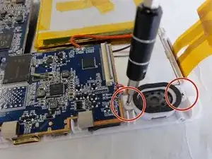 Удалите два винта, удерживающие динамик, с помощью отвертки Phillips #000.