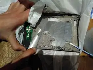 Экран этого Kindle 4 был повреждён. С передней стороны трещину было не видно, но половина экрана перестала реагировать и замерла. Мы заказали новый экран на AliExpress.