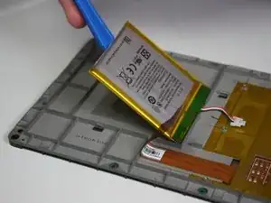 Используйте пластиковый инструмент для вскрытия, чтобы поддеть аккумулятор с задней стороны экрана.