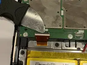 Откройте ZIF-разъем, который подключен к экрану, осторожно используя инструмент iFixit Jimmy.