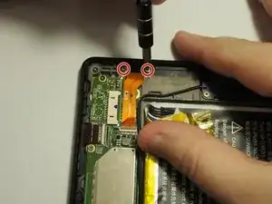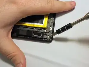 После нахождения USB порта в верхней части устройства, удалите (2) винта Torx T4 размером 3 мм.