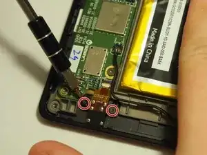 После нахождения Aux порта в нижней части устройства, удалите (2) винта Torx T4 размером 3 мм.