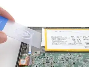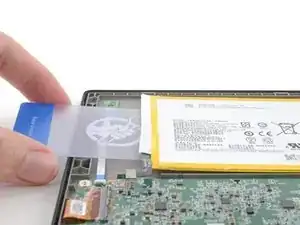 Пинцетом или пальцами отлепите от платы батарейный кабель и разделите покрытие.