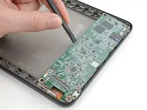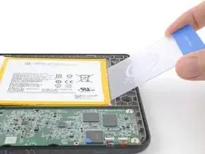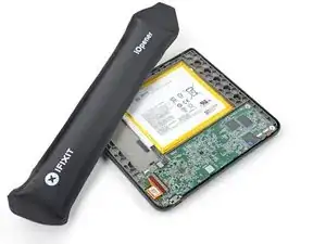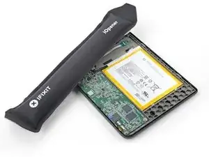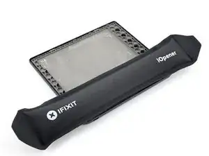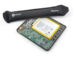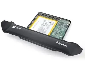 Нагрейте iOpener и положите его на плату с кнопкой питания в верхнем левом углу на 90 секунд, чтобы размягчить покрытие.