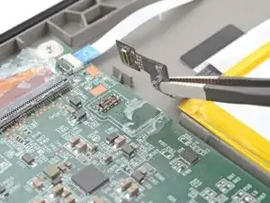 Используйте пинцет с притуплёнными концами, чтобы медленно и равномерно тянуть кабели от их ZIF-разъёмов на одном уровне, отделяя покрытие.