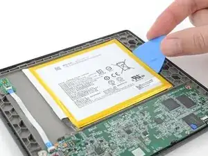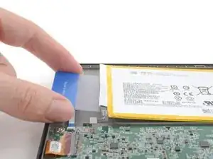 Подденьте одну сторону синего язычка соединительного кабеля заострённым пинцетом, чтобы отделить покрытие.