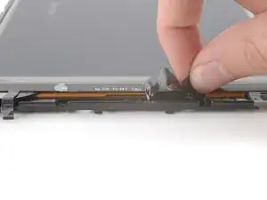 Используйте пинцет, чтобы оторвать светозащитную ленту вдоль правого края экрана настолько, чтобы можно было ухватиться за неё пальцами.