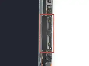 Приложите нагретый iOpener к ZIF‑коннектору соединительного кабеля на плате в течение 90 секунд, чтобы размягчить покрытие.