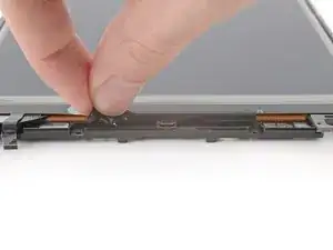 Нанесите разогретый iOpener на верхний край передней крышки на 90 секунд, чтобы размягчить клей под ней.