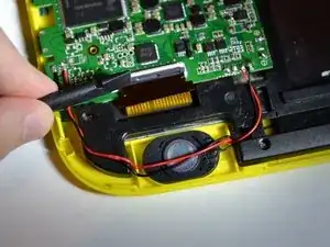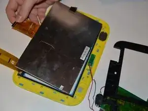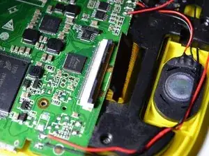 Вам потребуется удалить 2 шлейфа, один из которых соединен с сенсорным экраном (у аккумулятора), а другой - с желтым пластиком (у динамика).