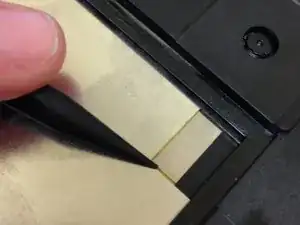 Используйте острый конец шпателя, чтобы отклеить черную полоску, приклеенную к экрану.