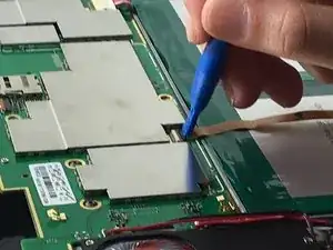Используйте пластиковый инструмент для открытия, чтобы отключить плоский шлейф от разъема на материнской плате.