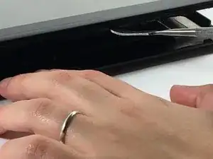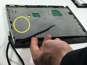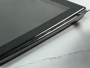 Переверните планшет так, чтобы экран был обращен вверх, и используйте металлическую лопатку, чтобы отделить экран от боковых частей.