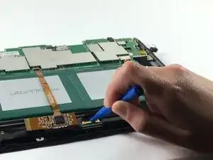 Используйте пластиковый инструмент для открытия, чтобы отключить кабель дисплея от его разъема на материнской плате.
