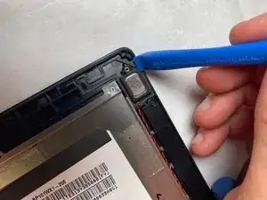 Используйте инструмент для вскрытия, чтобы поддеть динамики и вынуть их из планшета.