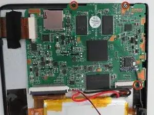 Используйте отвертку Phillips 00, чтобы выкрутить три винта Phillips длиной 4 мм, отмеченные красным.