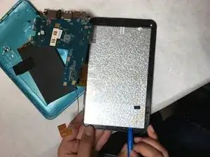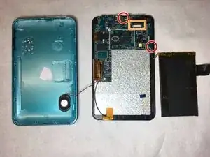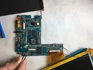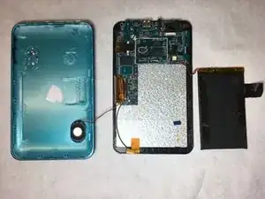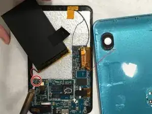 Аккумулятор приклеен к тыльной стороне экрана; поэтому аккуратно оторвите аккумулятор от задней стороны. Будет ощущаться сопротивление — это нормально.