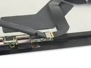 Под этой частью экрана находятся хрупкие антенные кабели. Тщательно следуйте процедуре в шаге 13, чтобы не повредить их. Здесь же клей самый толстый.