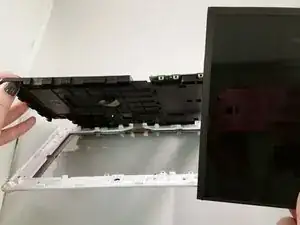 Используйте руки, чтобы отделить экран, так как он приклеен к задней части материнской платы.