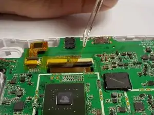 Используйте пинцет, чтобы вытащить шлейф из гнезда фиксатора.