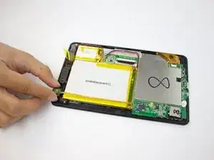 Снимите два провода. Затем полностью извлеките батарею из устройства.