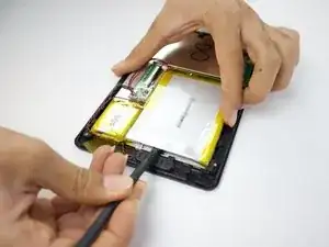 Используйте лопаточку, чтобы оторвать батарею от клея, прилегающего снизу.