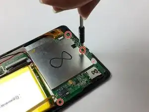 В нижней части планшета возьмите отвертку J000 и выкрутите три винта длиной 3 мм, удерживающие материнскую плату.