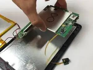 После того как материнская плата освобождена от винтов и соединений, поднимите её двумя пальцами и медленно положите рядом с передней панелью устройства, в которой закреплен дисплей.