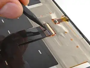 Используйте пинцет, чтобы отодрать и удалить ленту кабеля экрана с ZIF‑разъёма экрана.