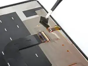 Приложите нагретый iOpener к верхнему левому углу экрана (теперь это ваш нижний правый угол, поскольку планшет повернут) на три минуты.