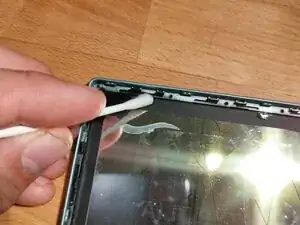 Используйте изопропиловый спирт, чтобы ослабить клей между экраном и рамой.