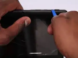 Начиная рядом с разъемом для наушников, вставьте плоский конец лопатки между экраном и задней крышкой.