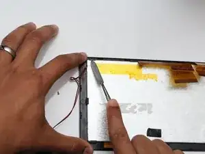 Используйте плоский конец лопатки, чтобы аккуратно отподдеть аккумулятор от задней стороны экрана.