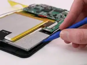 Используйте синий пластиковый инструмент для вскрытия, чтобы поддеть корпус планшета.