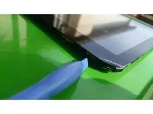 Осмотрите кромку планшета — Вы увидите небольшое углубление в рамке экрана, куда можно вставить пластиковый инструмент для вскрытия. Вставьте кончик инструмента и подденьте, чтобы образовалась маленькая щель. Затем вставьте кончик второго пластикового инструмента и тоже подденьте.
