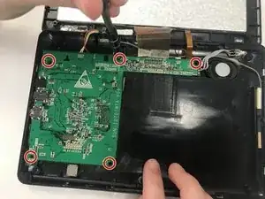 Открутите пять винтов Phillips 4,47 мм, которые необходимо вынуть, чтобы отсоединить материнскую плату от корпуса.