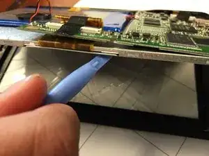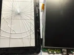 В этом руководстве показано, как заменить треснувший экран. Сначала необходимо разобрать планшет. При этом не применяйте чрезмерную силу, так как это может привести к разрыву проводов внутри или поломке пластиковых защёлок, удерживающих планшет. Сломанный экран не будет реагировать на прикосновения, поэтому эту деталь нужно заменить.