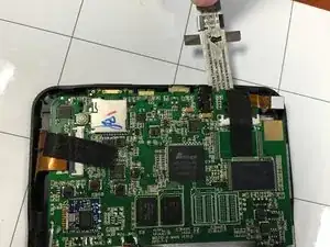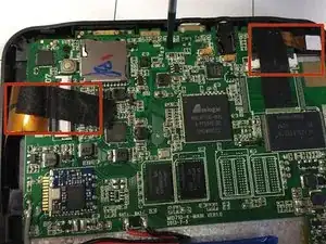 По бокам планшета находятся ленточные шлейфы. Необходимо отсоединить шлейфы, подключённые к экрану, чтобы избежать их разрыва. Ленточные шлейфы соединяют материнскую плату и экран.
